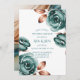 Elegant teal watercolor roses paired with warm copper leaves create a romantic and modern floral frame design. This invitation features floral arrangements in all four corners with a clean white center, perfect for adding your wedding details. Ideal for fall weddings, winter weddings, boho celebrations, and modern romantic themes. Beautiful for invitations, RSVP cards, details cards, programs, and full wedding stationery suites.