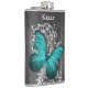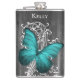 Teal Rustic Butterfly Personalised Flask