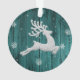 Add a whimsical touch to your Christmas tree with a Teal Rustic Christmas Reindeer Ornament. Ornament design features a teal rustic wooden background with a Christmas reindeer adorned with falling snowflakes. Additional gift and holiday items available with this design as well.