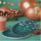 Teal rustic country wedding paper plates featuring rustic wood adorned with string lights.