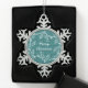 Cute and charming Rustic Holly Pewter Snowflake Ornament in turquoise featuring a delicate Christmas holly frame with a woodgrain look background. Easy to customise, add your own personalised holiday greeting. Click "Customise It" to find more personalisation options.