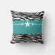 Trendy and modern Sassy Star Zebra Pillow featuring a chic black and white zebra print background and a bold turquoise border adorned with a fun star motif. This girly design may be customised with the personalised text of your choosing. Click "Customise It" to find more personalisation options.