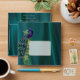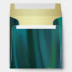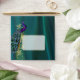 Elegant square wedding invitation envelope, done in teal coloured satin look, on the outside, and a pale yellowish gold, on the inside of the envelope. A semi transparent text area, on the front is decorated with graphics of a colourful peacock and gold tone flourishes. Golden yellow text return address, on the back flap, is fully customisable and ready to personalise with your information. Lovely finishing touch to our Teal Satin and Peacock Wedding Invitations.