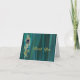 Chic teal satin looking wedding thank you note card, with lovely graphics of a gold tone flourish up the left side with a peacock and pearl decorations. Gold tone graphic text reads Thank You. Personalise the teal coloured text inside the card to suit your needs. Matching wedding products available.