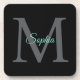 Teal Script Name, Large Grey Monogram on Black Coaster