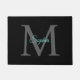 Teal Script Name, Large Grey Monogram on Black Doormat