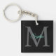 Teal Script Name, Large Grey Monogram on Black Key Ring
