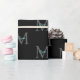 Teal Script Name, Large Grey Monogram on Black Wrapping Paper