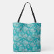 Teal, turquoise white and seafoam green semi-abstract sea shells on a turquoise background print bag