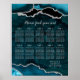This elegant and glamourous wedding table seating chart features a teal blue agate marble background with faux silver glitter accents. The text combines handwritten script and modern sans serif fonts for a classy and sophisticated look. This will be perfect for autumn fall and winter weddings.