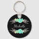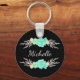 Key chain featuring a custom monogram and teal and silver flowers