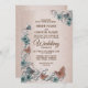 Teal Silver Floral Copper Butterfly Tan Wedding Invitation