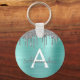 Teal Silver Glitter Stainless Steel Monogram Key Ring