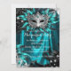 Teal blue Silver Sparkle Magical Night Masquerade Party Masquerade Birthday Party Invitation. Pretty silver and diamond mask & feather jewels. Please note: All flat images! Use for any age. “Please note: Zazzle shows ONE sample by default.