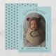 Welcome your little one to the world with modern boho charm! This Teal Simple Arch Frame Photo Birth Announcement features your newborn's photo framed in a soft boho arch, with a playful polka dot background on the back. Elegant script lettering and clean modern design come together to create a sweet and stylish way to share your baby’s arrival. Perfect for introducing your new bundle of joy to friends and family, this announcement blends personality and warmth with a trendy, heartfelt touch.