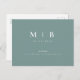 Teal Simple & Sleek Monogram Teal Save the Date Announcement Postcard