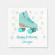 These personalised party napkins are perfect for roller skating themed birthday parties. They feature an illustration of a retro style quad roller skate in teal with coordinating asterisk shapes. Your message appears below the graphic in teal coloured script lettering.