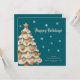 Celebrate the warmth and sweetness of the holiday season with this charming Gingerbread Christmas Tree Holiday Card. This delightful design features a whimsical watercolor illustration of a festive tree adorned with gingerbread cookies, candy canes, and delicate snowflakes against a rich teal background. The elegant script 'Happy Holidays' adds a touch of sophistication, making it perfect for sending season's greetings to family and friends. The card also includes space for a personal message, allowing you to add your own heartfelt wishes. Share the joy and magic of Christmas with loved ones near and far with this unique and memorable card.