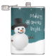 Enjoy your favourite adult beverage with this festive Teal Snowman Winter Scene Christmas Flask. Flask design features a happy snowman in a snowy wintry scene against a teal background adorned with matching colour snowflakes and the saying "Making Spirits Bright" which you can leave or personalise with your own saying. Additional gift and holiday items available with this design as well.
