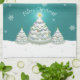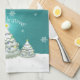 Add a holiday touch to your kitchen with this Teal Snowy Christmas Tree Kitchen Towel. Towel design features a trio of snow covered decorated Christmas Trees against a teal background and falling snowflakes. Additional gift and holiday items available with this design as well.