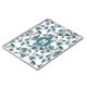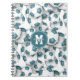 This soccer themed spiral notebook features a pattern of randomly arranged teal and white soccer balls in varying sizes turned every which way on a white background - player name and monogram or jersey number are customisable - by katz_d_zynes