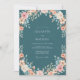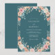 Delicate blooms in blush and peach hues artfully adorn this design against a rich teal backdrop. Lush foliage and soft petal textures create an enchanting, romantic atmosphere. This piece evokes a sense of timeless elegance and natural beauty.