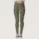 These leggings have a mid-century modern design of teal ovals connected by teal lines with light green circles all on a field of brown. Want different colours? Message me.