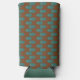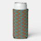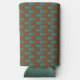 This seltzer can cooler has a mid-century modern design of teal ovals connected by teal lines with light green circles all on a field of brown. Want different colours? Message me.