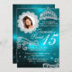 Teal Sparkle Diamond Tiara Photo Quinceanera Invitation