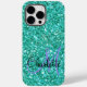 Fun party vibe, teal sparkling glitter Case-Mate iPhone 14 Pro Max Case - text font is customisable and design is transferable-