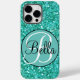 Fun party vibe, teal sparkling glitter Case-Mate iPhone 14 Pro Max Case - text font is customisable and design is transferable-
