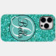 Teal sparkling glitter pattern monogrammed Case-Mate iPhone case