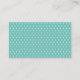 Business card for a veterinarian, pet carer, or cat kennels. On the left is a picture of a cartoon stack of cats, each one a different colour and design stacked one on top of the other to make a comical pile of kitties. below the cats are templates in teal lettering for your name and job title. On the right are templates for your business details. The back if the card is teal with white polka dot spots.