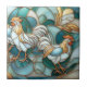 Teal Stained Glass Roosters Elegant Farmhouse Tile