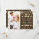 Add your favourite engagement photo or picture to this rustic string of lights save the date card that is part of a fall floral rustic string of lights wedding invitation set in teal mint blue aqua, coral, green, brown, white, yellow and brown hues with a beautiful wood look background reminiscent of a wooden fence and or barrel. An autumnal laurel wreath composed of acorns, berries, sunflowers, tulip rose and white blossoms sit on a leafy branch. The words Save the Date is flanked by two coral hearts. Perfect accompaniment for an outdoor fall, country, farmhouse, barnyard or rural chic themed wedding, bridal shower, anniversary party or couples shower. The back can be customised with the happy couple's proposal story or special message for their guests. The charming twinkle and fairy lights with a bokeh effect look bright, warm and inviting. Artwork © Chrissy H. Studios, LLC. All rights reserved.