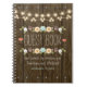 This wedding guest and advice book is part of a fall floral rustic string of lights wedding invitation set in teal mint blue aqua, coral, green, brown, white, yellow and brown hues with a beautiful wood look background reminiscent of a wooden fence and or barrel and nail head trim. An autumnal laurel wreath composed of acorns, berries, sunflowers, tulip rose and white blossoms sit on a leafy branch. The front of the notebook says Guest Book flanked by two coral hearts. It can be customised with your own wording and wedding date. Perfect for an outdoor fall, country, farmhouse, barnyard or rural chic themed wedding, bridal shower or couples shower or engagement party. The charming twinkle and fairy lights with a bokeh effect look bright, warm and inviting. Artwork © Chrissy H. Studios, LLC. All rights reserved.