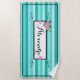 Teal Stripes With Flamingos and Hibiscus Flowers Beach Towel