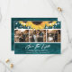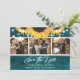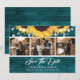 Personalised rustic teal and sunflower wedding photo save the date card. Easily personalise this teal save the date with your images and wedding details including a wedding website.