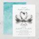 Celebrate the couple-to-be with this elegant teal bridal shower invitation featuring romantic watercolor swans forming a heart. The classic black and white illustration is beautifully accented with a teal calligraphy title and matching watercolor envelope background.