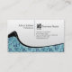 This business card design features a wave shaped bottom with a teal tile pattern as the background. The top section is an off-white background. Both these sections are separated by a blue wavy stroke. Your name and details appear on the top. Perfect for business, administration, serious, minimal, simple themes.