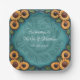 Teal Tooled Leather Sunflower Border Wedding Paper Plate