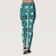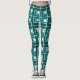 These leggings have a geometric design made from Ls in shades of teal laid in different directions repeating across the design.