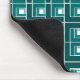 This mouse pad has a geometric design made from Ls in shades of teal laid in different directions repeating across the design.