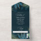 Teal - Turquoise and Gold Tropical Leaves All In O All In One Invitation