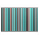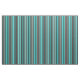 This design features a pattern of stripes having colours like teal, turquoise, beige, maroon, and black.