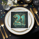 Elevate your milestone celebration with these luxurious teal and gold 21st birthday party napkins. This design features a stunning "21" typography filled with a turquoise mosaic and faux stained-glass texture, outlined in elegant faux gold foil. The dark background highlights the sparkle and bokeh effects, creating a sophisticated atmosphere perfect for an evening party or dinner. While the sample shows "Sebastian," the template is set up for you to easily personalize the name and date to match your specific event. This gender-neutral design works perfectly for a men's 21st birthday, a glamorous ladies' night, or a classy joint celebration. Coordinate these with matching plates to complete the geometric gemstone theme.