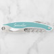 Teal/turquoise wine bottle corkscrew opener personalised with your name. Perfect gift, along with a custom bottle of wine, for your bridal party proposal gift boxes or your bachelorette party weekend.