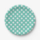 Teal Turquoise & White Polka Dots Birthday Party Paper Plate