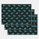 Teal Vampire Lips and Teeth on Black Wrapping Paper Sheet