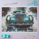 Make a bold statement with this tissue paper featuring a stunning teal vintage car surrounded by an ethereal mist. The sleek design and dramatic lighting bring out the classic curves and chrome details of the retro automobile, making it perfect for car enthusiasts and fans of timeless automotive elegance. Ideal for crafting, gift wrapping, or adding flair to events, this design exudes sophistication and nostalgia. Perfect for decoupage projects and creative ventures that demand style and drama.